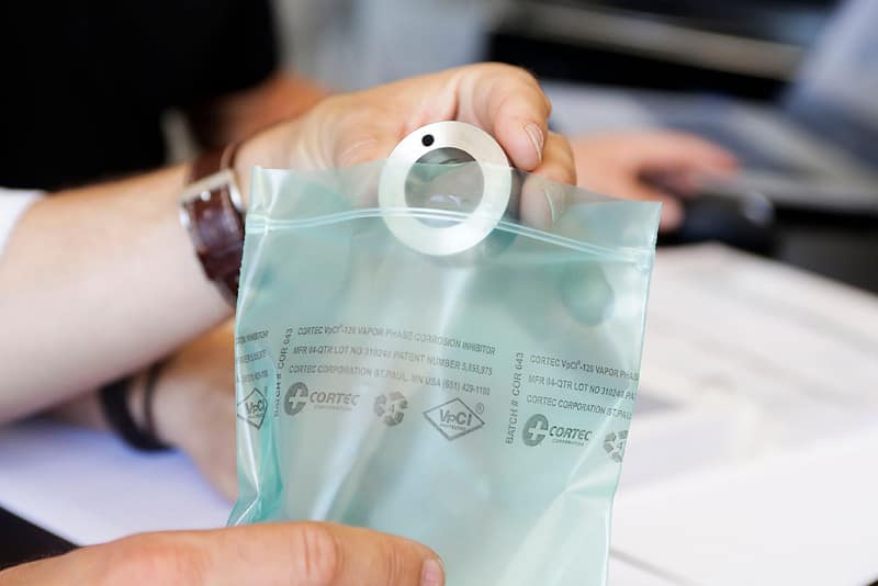 Am Anfang einer Einführung alternativer Lösungen stehen in erster Linie die Beratung am Telefon und Schulung vor Ort. Dies führt weiter zur Analyse der bestehenden Schutzverpackung oder der bis dato eingesetzten flüssigen Korrosionsschutzmedien. Da das Spektrum an verfügbaren VpCIR-Schutzprodukten umfassend ist, bieten sich nahezu für alle Bereiche, angefangen bei internen Herstellungsprozessen bis zur Exportverpackung, effiziente Möglichkeiten an. Jeder Prozess und jede Anwendung ist immer individuell und muss entsprechend im Detail begutachtet werden. Corpac AG begleitet den ganzen Prozess von der Produktewahl bis zur Applikation. Für erste Selbsttests durch den Kunden werden VpCIR-Testmaterialien zur Verfügung gestellt. Als unterstützendes Element können im Vorfeld entsprechende Anwendungs- und Klimmakammertests durchgeführt werden, um Verträglichkeiten und Schutzperformance zu prüfen.